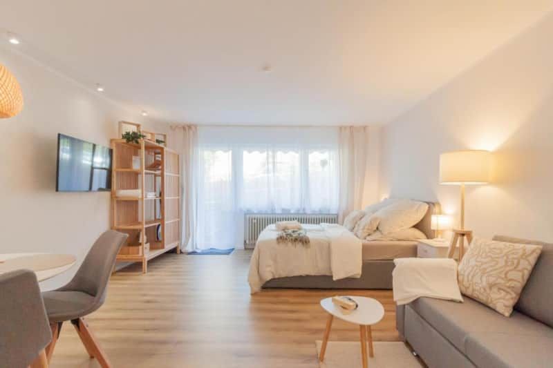 Gäste sollen sich schnell wie zu Hause fühlen. Daher sind bequeme Möbel, wie hochwertige Matratzen und Sofas, sowie eine gut ausgestattete Küche sehr wichtig. Denke auch an praktische Details: